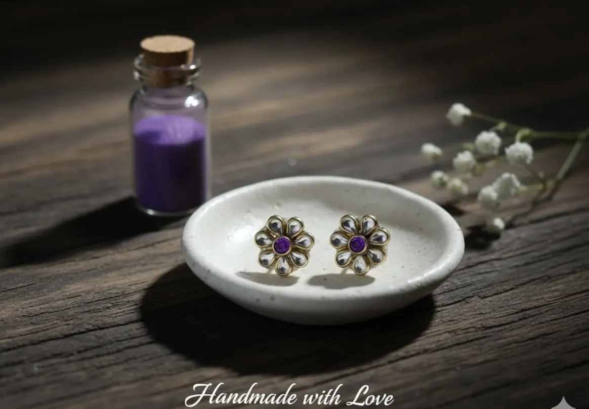 Embrace subtle elegance and handcrafted charm with the “Amethyst Daisy” Petite Floral Stud Earrings. These dainty studs are designed to be the perfect all-purpose accessory: elegant enough for a simple office look and comfortable enough for children’s sensitive ears.