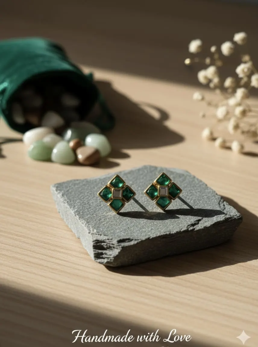 Be the first to review “Emerald Clover Geometric Stud Earrings: Office Elegant & Kids Safe”