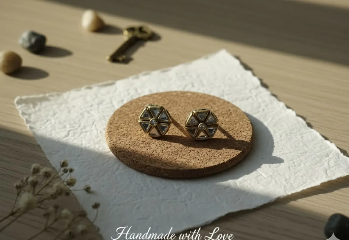 Their secure post-back closure and small, neat size ensure they stay comfortably in place all day. These studs are perfect for adding a touch of modern geometry and simple elegance to any attire. The handmade touch makes them a unique and thoughtful accessory.