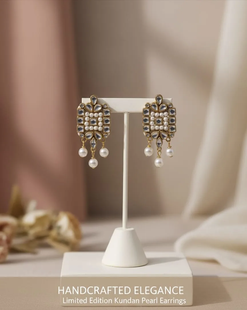 Adorn yourself with the timeless luxury of the Limited Edition “Royal Radiance” Kundan & Pearl Drop Earrings. These handcrafted earrings blend classic South Asian jewelry artistry with sophisticated European elegance, making them a breathtaking statement piece.